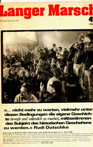 Stichworte: Prozeßdauer: 15.11.69-18.3.70. Urteil: 10 Monate mit Bewährung wegen Landfriedensbruch + schweren Aufruhrs wegen Beteiligung an der Gründonnerstag-Demo, die nach dem Anschlag auf Rudi Dutschke stattfand.
